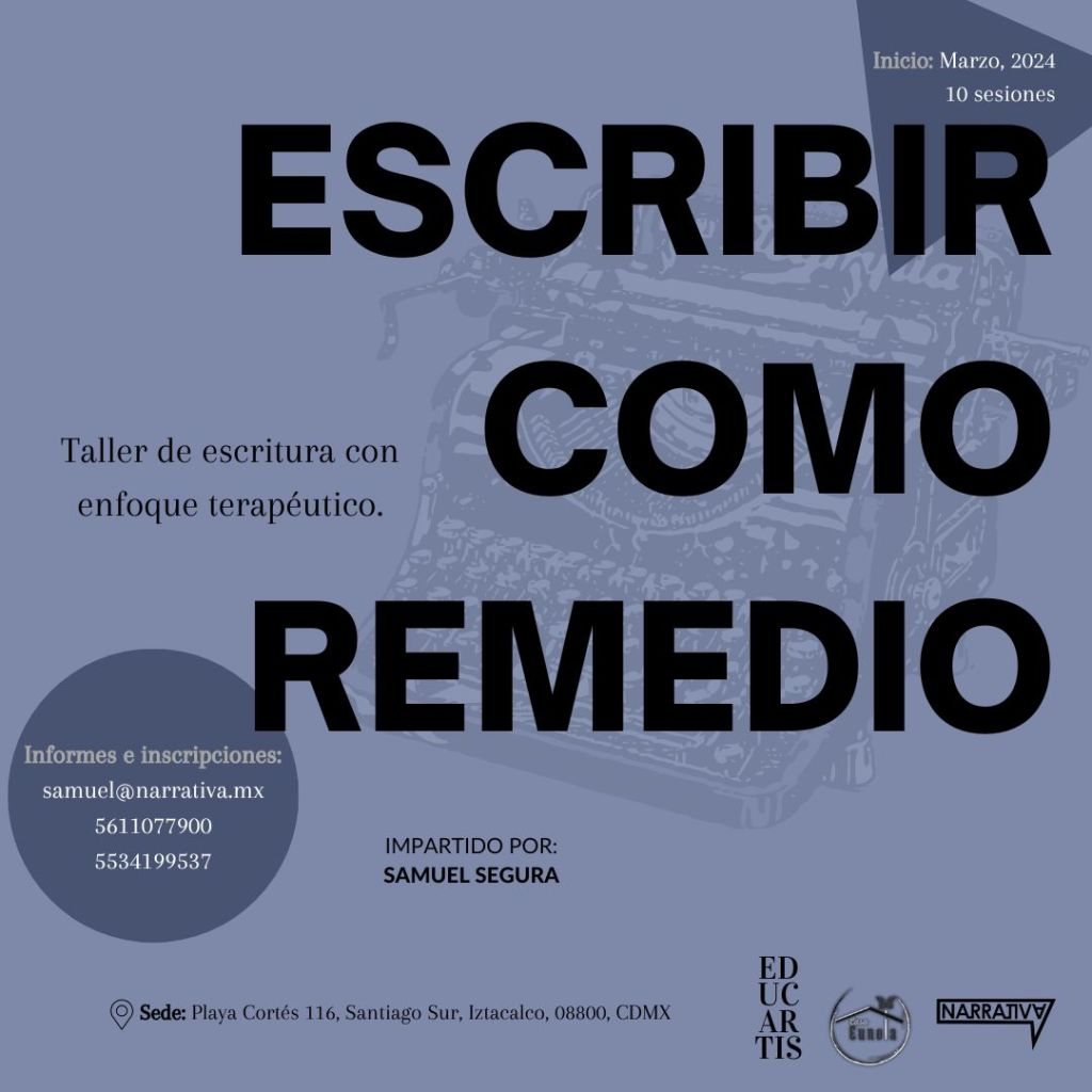 Entonces, insisto, la escritura resulta terapéutica. Debo confesar que me ha salvado la vida varias veces. Lo digo en serio. La situación anterior que describí (el poema que publiqué en mis redes) es un chiste si lo comparo con el hecho de haber escrito una novela en el momento de mayor crisis que he experimentado, hasta ahora, en mi vida. (Esa novela ha sido muy afortunada y goza de muy buena salud. Me ha dado tanto que no tengo como pagarle; desde luego que le agradezco mucho.)
