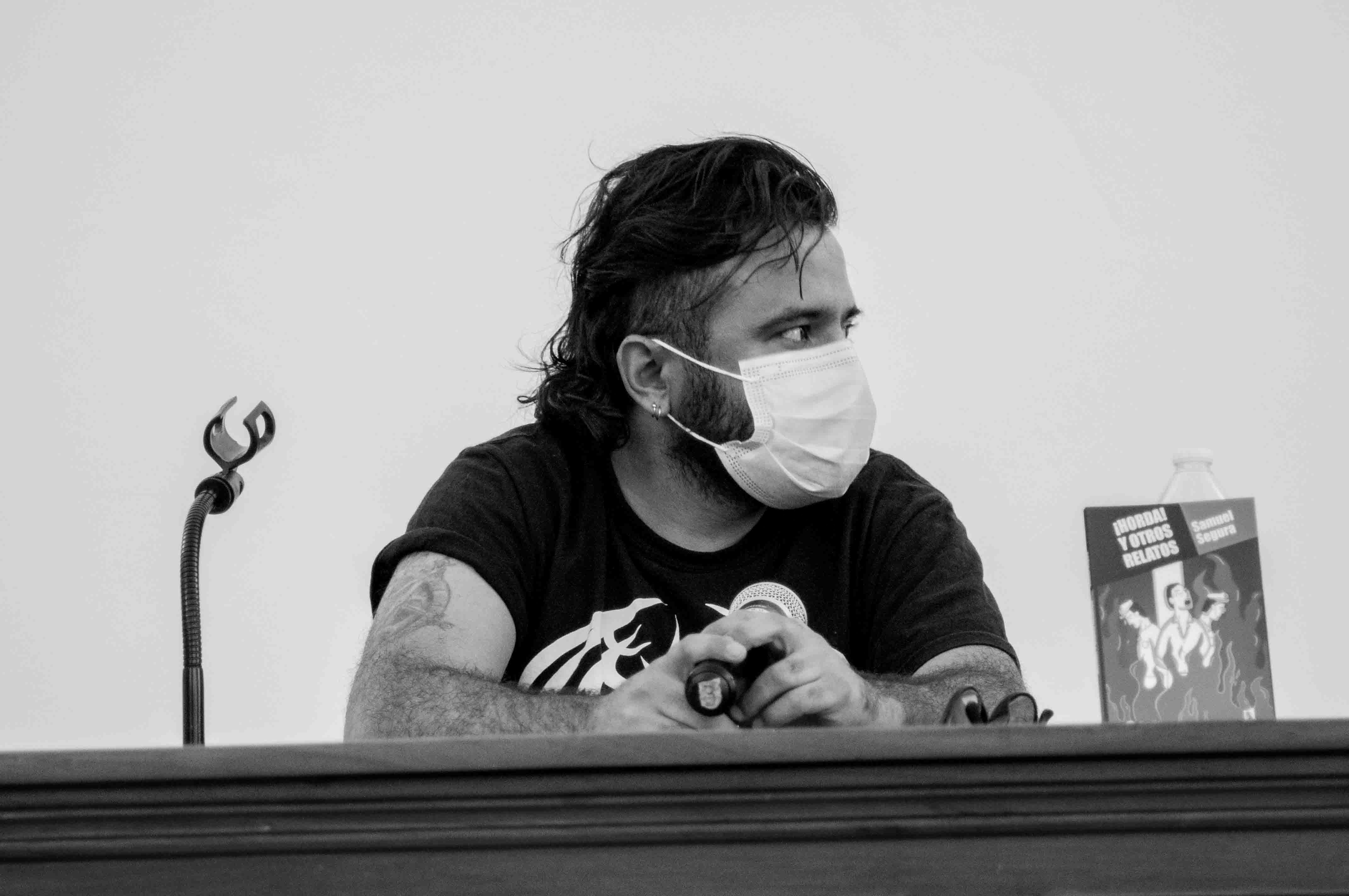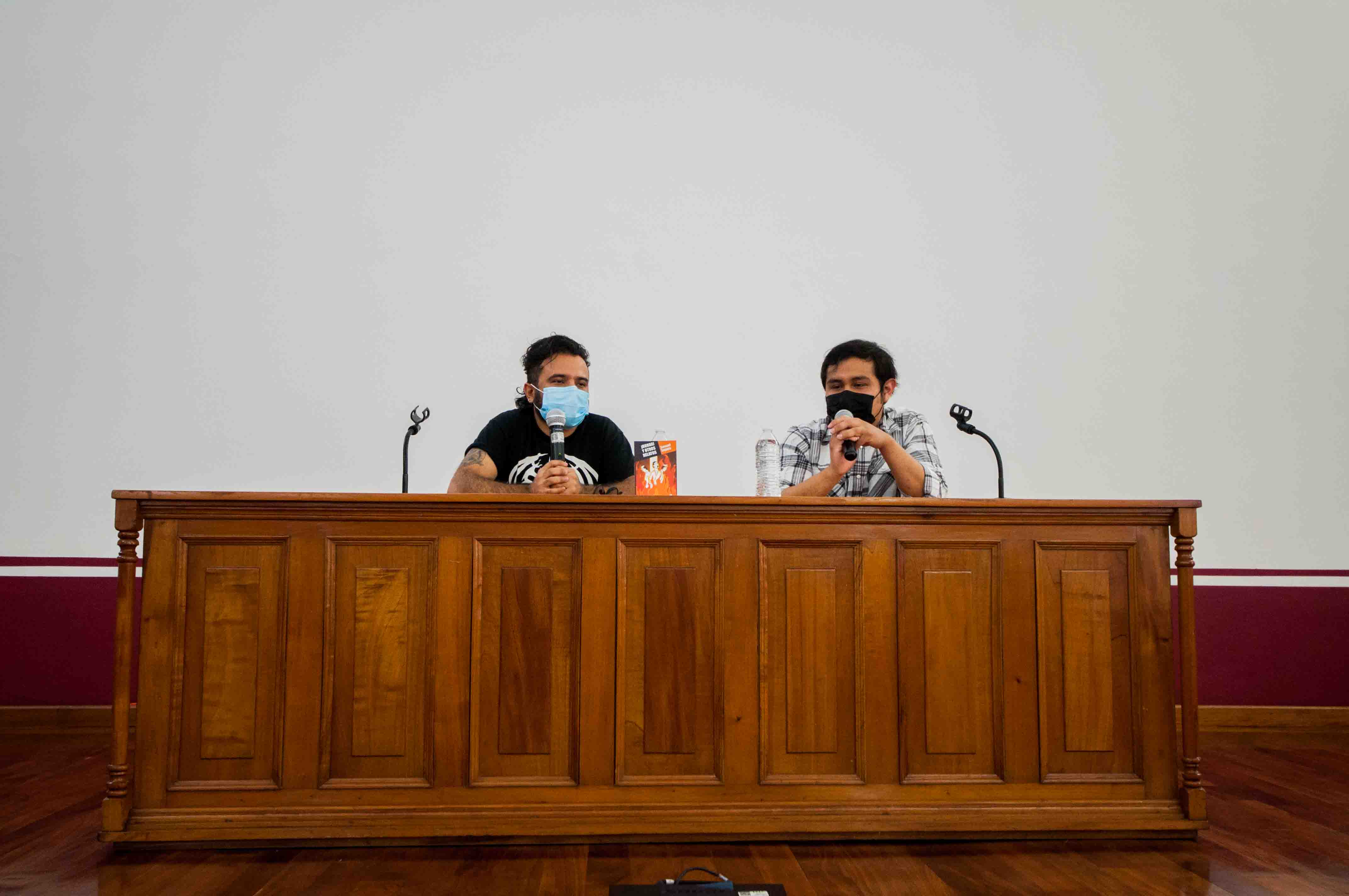 No mucho después inició la conversación. Luis y yo charlamos (Óscar no pudo llegar a tiempo; sus nuevas ocupaciones se lo impidieron). Entre otras cosas se habló del humor, de la violencia, de la importancia de escribir desde las entrañas. Esto frente a un pequeño grupo de jóvenes.