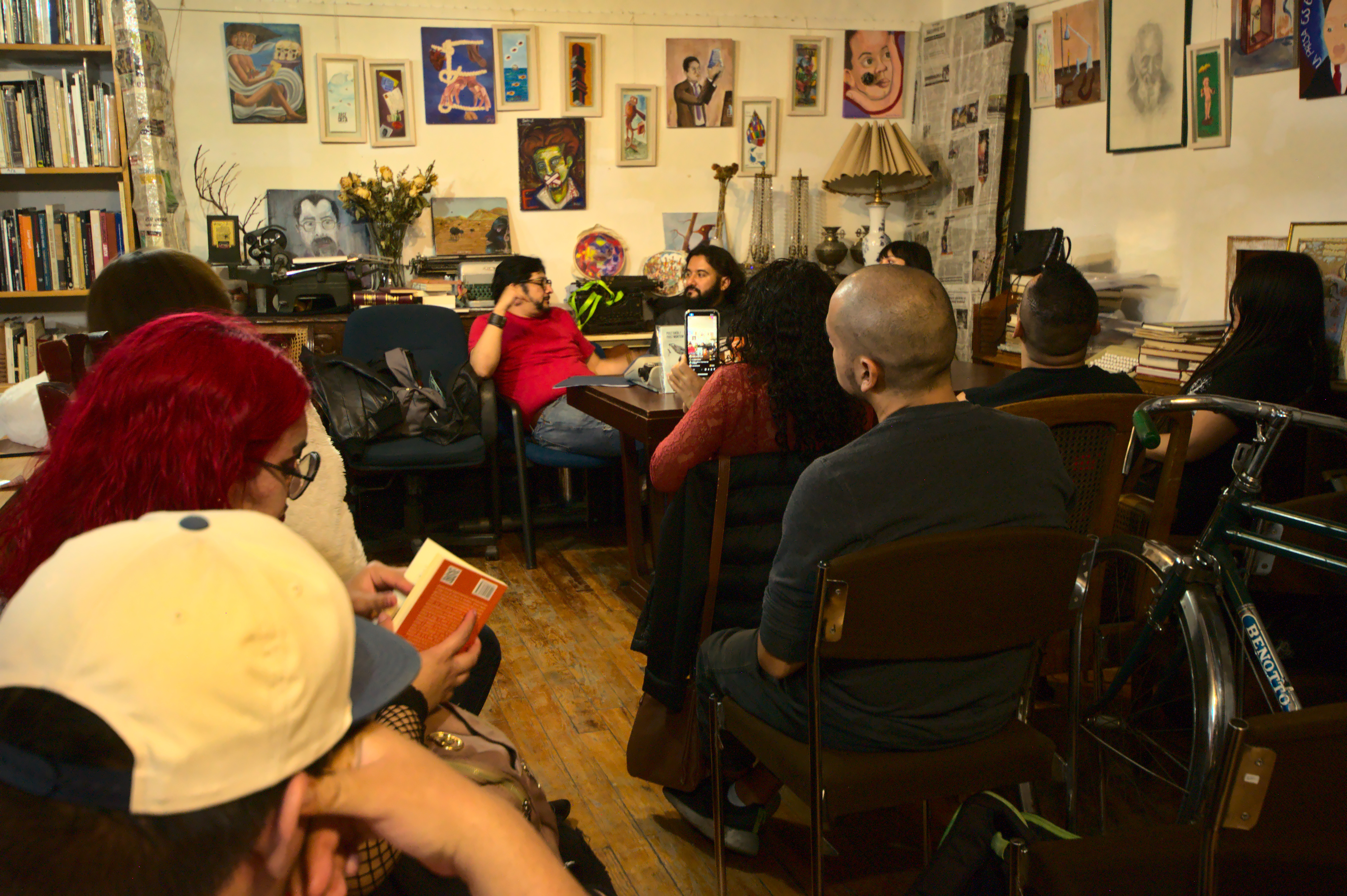 Si autores como Guillermo Arriaga (a quien aprecio como tal, aunque César Mauricio discrepe conmigo) piensan así (en que uno tiene que estar moviendo su propia chamba, constantemente, para hacerse de un lugar, de un público lector), qué me queda a mí más que asumirlo. Y hacerlo. Y hacerlo con gusto y con ganas. Así, en ese sentido, esta es la presentación no sé qué número que hago este año, y en mi breve carrera que ya abarca una década desde el primer libro que publiqué, es la… quién sabe. ¿Veinte, treinta? He tocado mucho más con mi banda, Asedio, donde soy baterista… y no pasa nada. Nada en el sentido de: ¿Me he vuelto famoso y millonario por hacerlo? No. Gracias al Dios que reina en lo oscurito. Por el contrario: los papás tenían razón cuando decían: de hambre te vas a morir. (Bueno, uno de algo se ha de morir.)