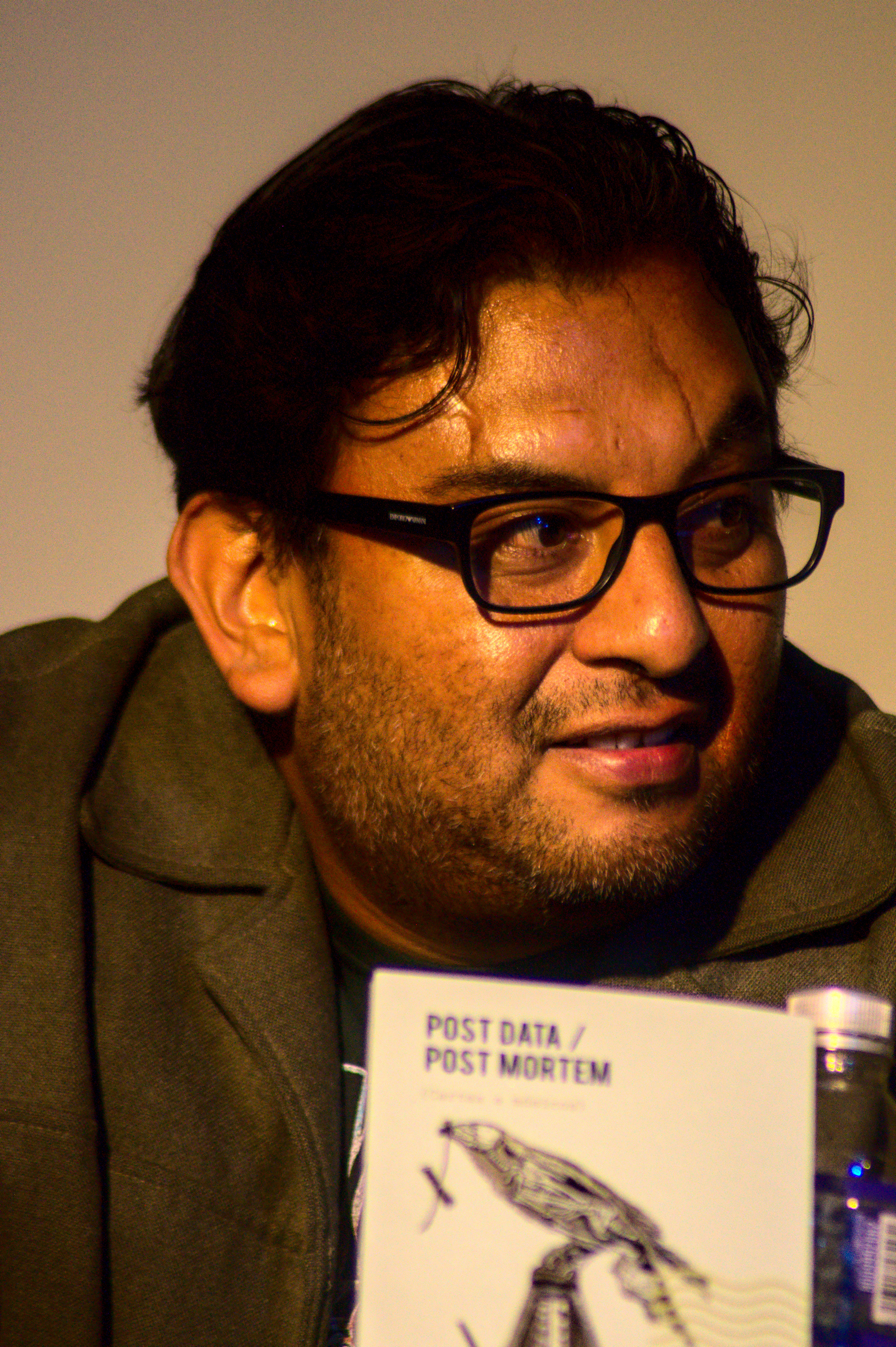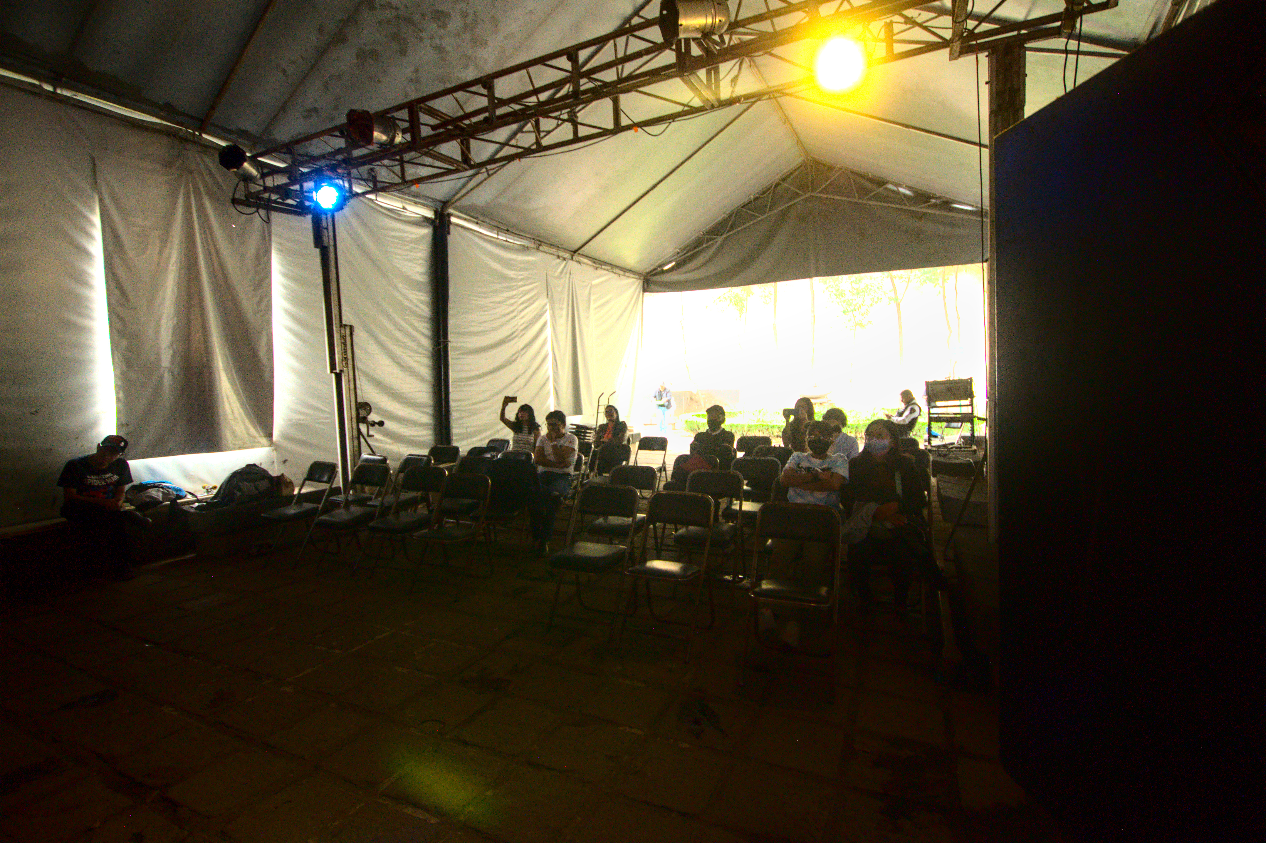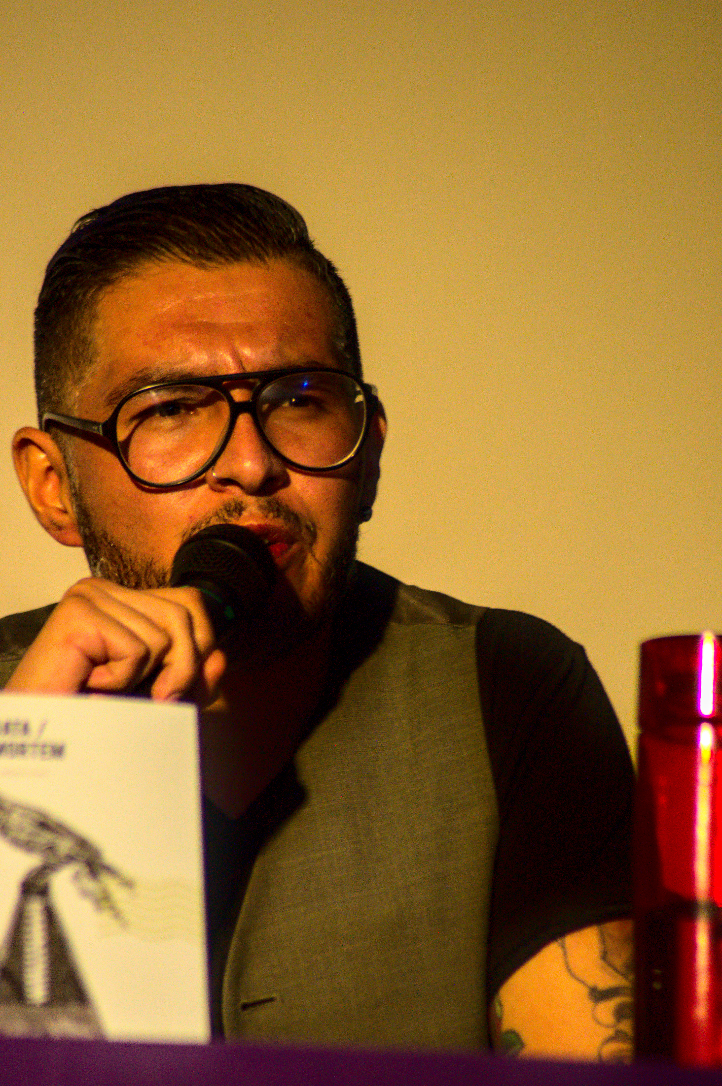 Compartir, no competir. Ese, más o menos, sería el lema de Post Data – Post Mortem (cartas a músicos), dijo ella. Recién lo habíamos platicado: en escritura no hay competencia, le dije (por más que los escritores quieran competir). Media hora antes el sol aún quemaba las frentes. Y un joven guitarrista-eléctrico tocaba sus canciones (aunque, tras agradecer el apoyo de los presentes, se fue luego de pronunciar el clásico: ‘ya me tengo que ir’, y no se quedó a ver la presentación). Marcela, Israel y Ricardo subieron al estrado entonces. La mesa los iluminaba bien; el público, me dijo ella, se veía oscuro desde ahí. Cartas a músicos muertos presentadas en un panteón. Qué mejor. Algunas lápidas arrumbadas por ahí. Algunos gatos paseándose. Un mantel morado. Faltan unas calaveras, le dije a Zindy, la anfitriona. Atrás hay unas, me contestó, y sonrió como suele hacer. Entonces los escritores no escritores (¡qué sacrilegio!) conversaron. Ella, Marcela, intervino después de Israel (vestido con un saco hermoso; voz cavernosa de borracho mítico, aunque tierno), quien con todo derecho leyó el texto introductorio (pues él lo escribió); ella, Marcela, me había dicho una noche antes que estaba nerviosa. Emocionada. Pues no sabía muy bien qué iba a decir. Yo permanecí en silencio. Relájate, le dije luego, lo harás muy bien. Y es que confío en ella especialmente para estas cosas. Entonces se soltó. Las palabras emergieron de su boca, esa que dibuja su maravillosa sonrisa, con toda la naturalidad y el profesionalismo posibles; esos que le ha dado la docencia, las mesas que ha moderado, las lecturas, las conversaciones académicas. Habló y movió las manos y el público (sí, cautivo) le aplaudió mucho y yo le aplaudí aún más. Tenía el corazón henchido (hinchado). Qué pinche emoción. Ricardo terció el momento. Sonrisa y peinado de galán, habló con toda la soltura de un hombre que se define a sí mismo como un no-melómano, pero que escucha tanto a Pink Floyd como a Rigo Tovar (a quien dedicó su carta). Ella, Marcela, se la dedicó a Charles Bradley. Ambos leyeron fragmentos de las mismas, privando a su público del deleite completo. Si hubiese estado arriba, pensé, los hubiese obligado a leerlas. Pero estaba abajo, donde me corresponde -a veces-, tomando fotos, presenciando el momento que de pronto se ensordeció entre rayos y truenos; un chubasco que apenas duró unos minutos.