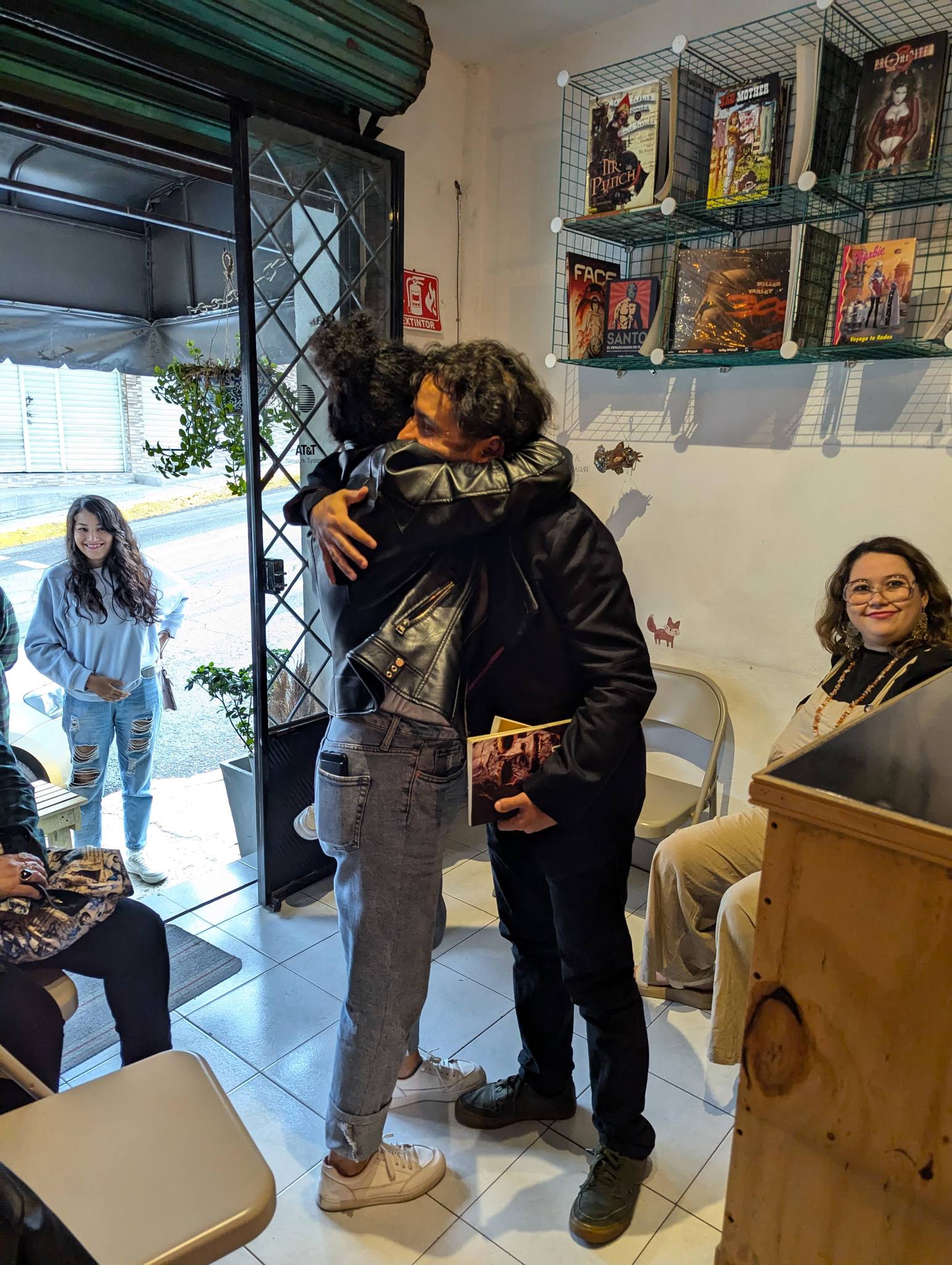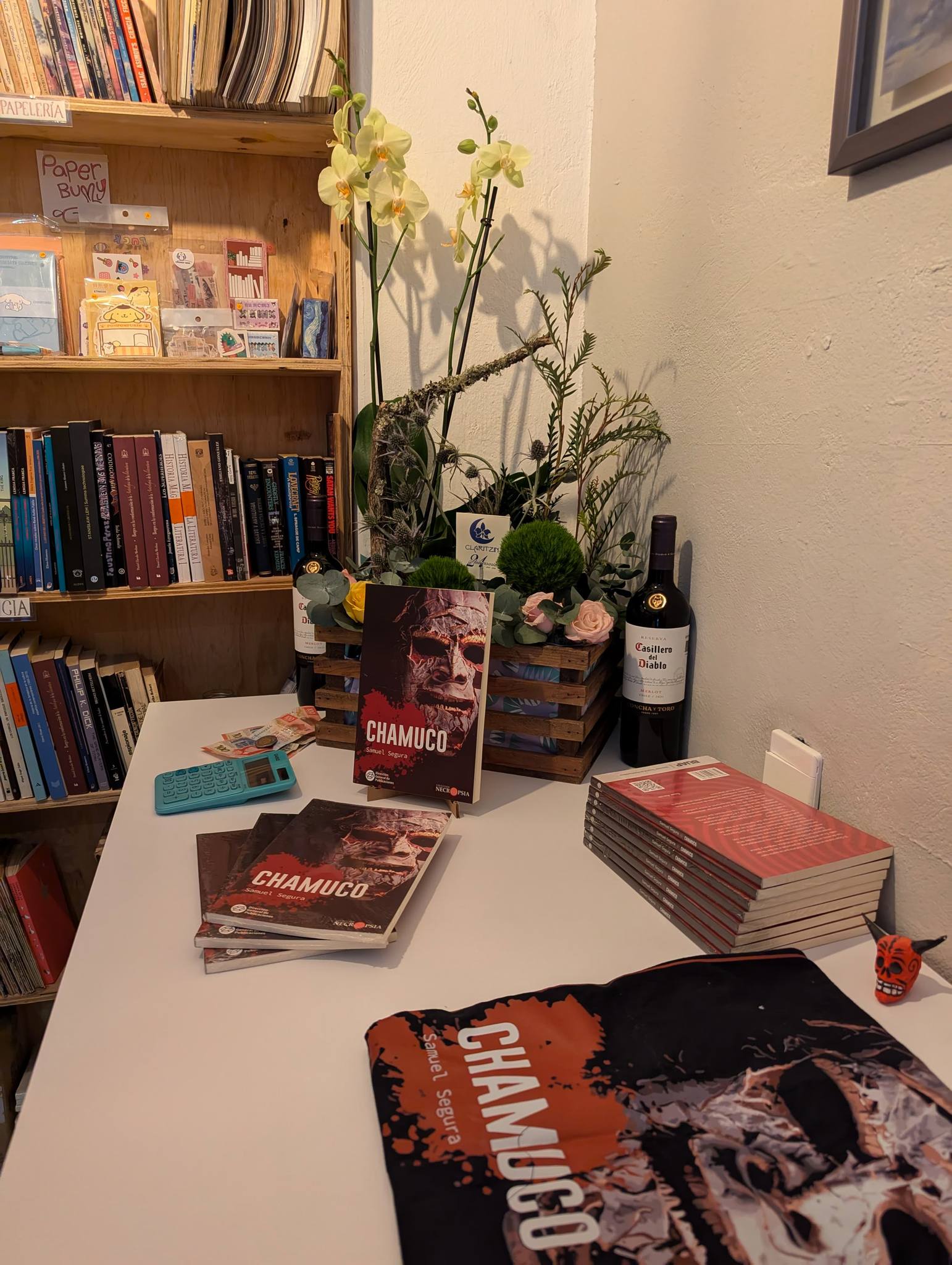Finalmente el Chamuco se apareció en Ecatepec. (O quizá de ahí provino.) Lo hizo en el lugar más adecuado para hacerlo: en la Peripheria Librería, en el barrio; un espacio especializado en libros de ciencia ficción, terror y policial. Luego de la presentación de Ximena (quien junto con Jonathan inició este proyecto), Zel abrió la charla y Fátima la secundó. La verdad es que, si no hubiese tenido que intervenir, nomás las habría escuchado. Qué par de mujeres tan brillantes. Se aventaron comentarios que, obvio, ni yo había visto de la novela. (La verdad hasta me la antojaron.) Ninguna de las dos es propiamente mi amiga, así que disertaron desde un lugar, digamos, más objetivo. Fue una de las condiciones para presentar. Y entiendo el punto. Sé que los amigos suelen ser complacientes, sin embargo también pienso que la presentación de un libro es, ante todo, una celebración. Y así lo fue. Mis familiares y amigos llenaron el espacio (de lo contrario, no habría habido nadie) y escucharon atentos a las presentadoras. Hubo risas y un poco de controversia, hubo psicoanálisis e interrupciones onomatopéyicas de los camiones que pasaban afuera, el uno cada vez más grande que el otro. BRRRRRAAAAAAMMMMMM, honraron, a su modo, la historia de la que hablábamos. La última pregunta, sin embargo, fue aún más atronadora: Para ti, ¿qué es el amor? (Debo tener más cuidado con lo que declaro en las entrevistas, pensé, pues en una dije que ésta era una historia de amor. Pienso que, de algún modo, todas lo son.) Respondí lo que pude. Luego, cuando ya estaba en mi casa a punto de dormir, pensé: Esto. Esto es el amor. Estar aquí. Su compañía. Sus abrazos. Sus risas. Su complicidad. Si no, como diría Vonnegut, ¿qué lo es?