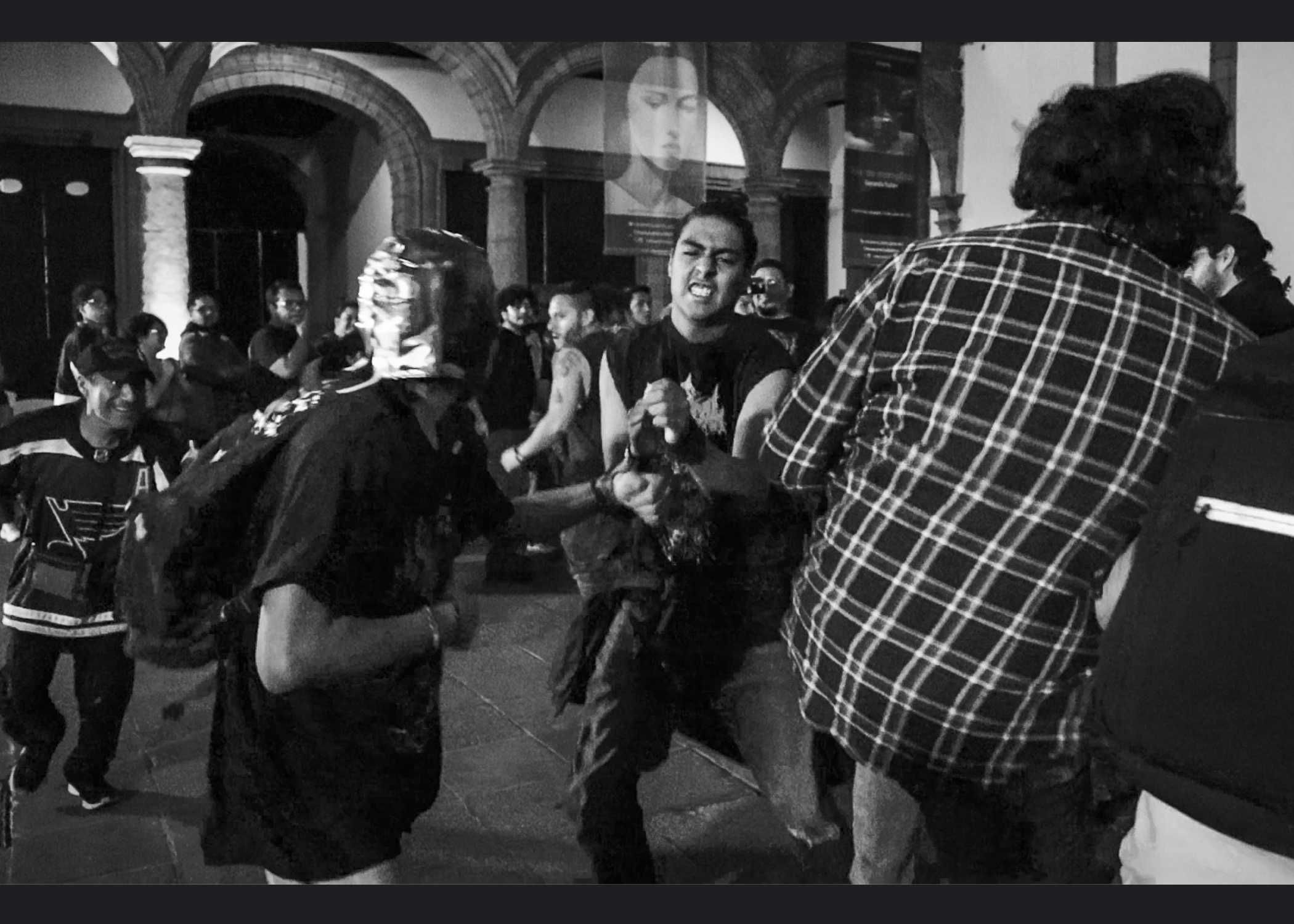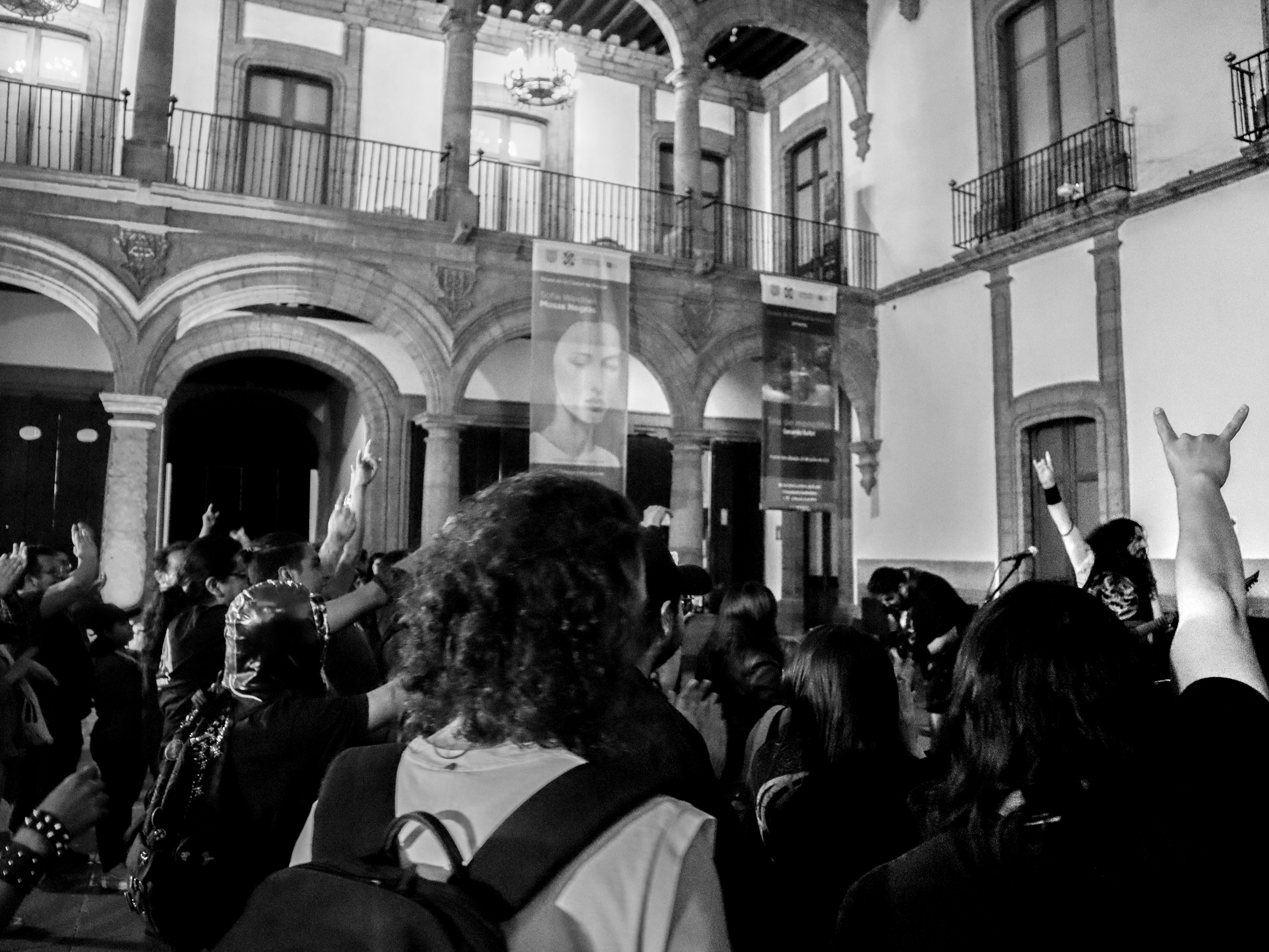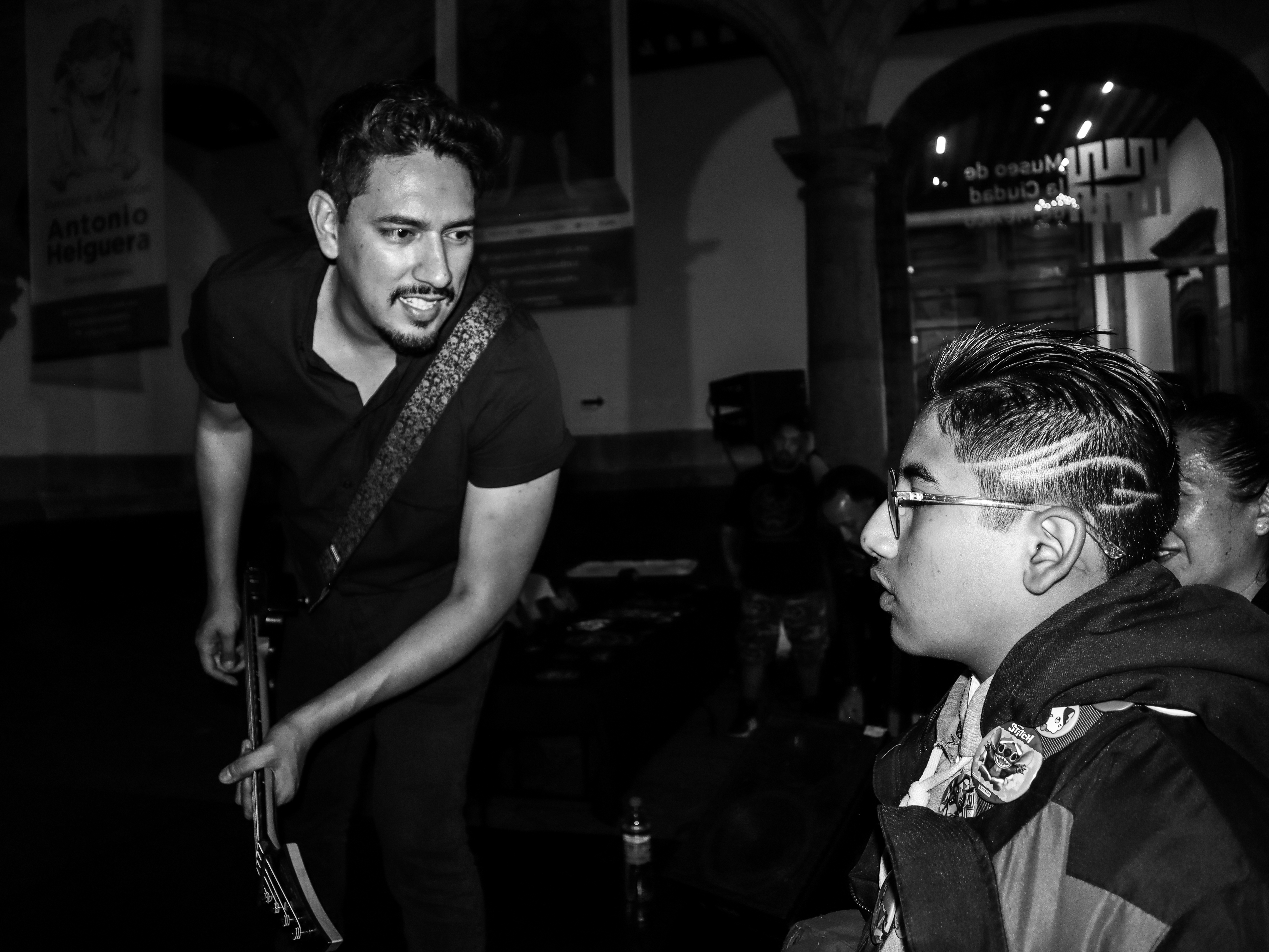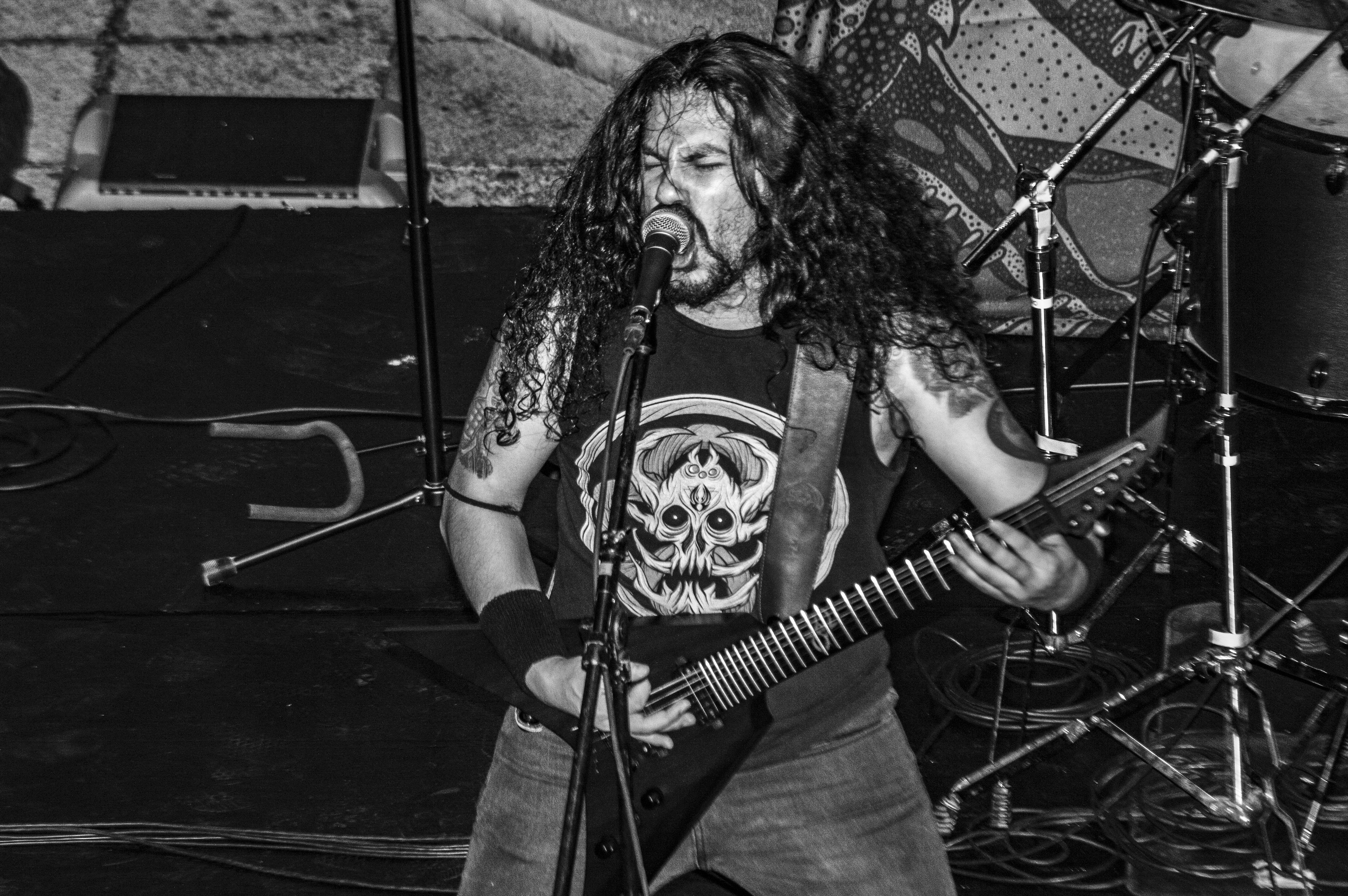 ¿Por qué no le pones un nombre?, me preguntó Armando una vez, en el taller, y luego me contó que él nombraba a todos sus instrumentos (tocaba piano, bajo, guitarra, ukulele…). La verdad es que yo, de los dos que había tenido, a ninguno lo había bautizado. (A ninguna, en realidad, porque baterías.) Fue así que brotó, de algún rincón de mi gañote, sin más, el nombre de Roberta. Y así le puse a la batería de la protagonista de Metal; es el único personaje en esas páginas que tiene nombre propio. Le agarré cariño y por eso también le puse así a mi tercera batería (cuarta, porque no puedo no contar a E-Roberta, la electrónica), que me vendieron Bruno y Dalia. Estas imágenes pertenecen a su debut (que casi no se logra, acá el porqué). El Gabriel y el Emmanuel la armaron chingón. Sonó al tiro. Le pegué recio (y me desfogué). Es probable que grabe en ella lo nuevo de Asedio. Ojalá. Como sea, le doy las gracias. Y se las presento. ![]()
