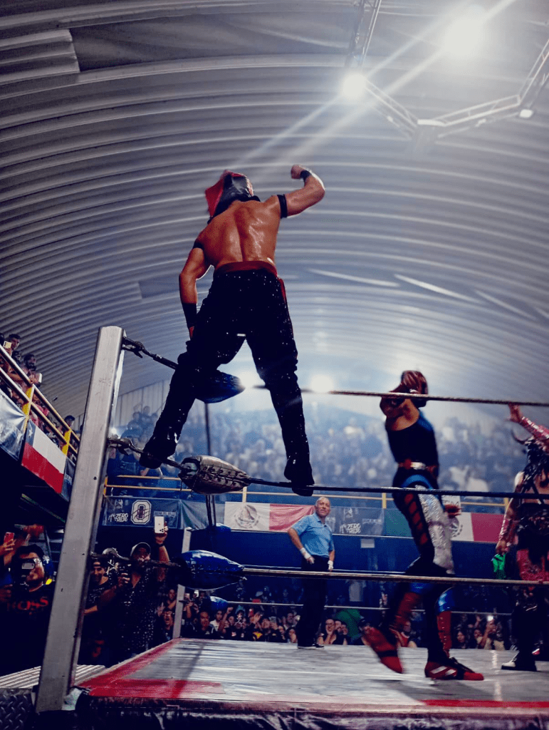 Me dijo que estaba enamorada de él. Que antes de conocerlo no pensaba formar pareja, pero que en cuanto se cruzó con su vida la cambió para siempre. Luego ella, Perfecta, me preguntó si tenía novia, si estaba bien, si quería que me presentara a alguien. Le dije, respetuosamente, que a su hermana (de la cual me acababa de hablar). Reímos. Era su primera vez en las luchas, y era como si fuera la mía pues tenía más de diez años sin ir. Quizá la vez anterior lo hice so pretexto de una crónica para la escuela de periodismo, donde un profe supo señalarme el camino cuando me dijo: tú escribes. Acá la función fue hace ocho días, en el barrio, en la Arena Del Valle, fundada, me informaron Emmanuel y Vinnie -quienes insistieron en que los acompañara-, por Pentagón 0M, luchador ecatepense que ahora se la rifa en la WWE. Afuera, una hora antes de entrar, la gente -algunos con sus máscaras, en particular los niños-, se aproximaba a los alrededores formando una larga fila. Extrañé un chingo tener a la mano una cámara de verdad y no la piltrafa de mi cel que terminé usando (como se puede ver en esta publicación). Un reportero de un medio digital entrevistó a Vini, quien demostró ser una voz autorizada en el asunto. Adentro ubicamos nuestros lugares en la primera fila. Compramos papas, palomitas, cerveza y una torta de pierna medio aplanada, envuelta en un plástico como con los que envolvían los dvds piratas. Antes de que empezara la primera función -fueron cuatro antes de la estelar, en la que participaría Mr. Iguana, cuyo estilo de lucha se basó en hacer caras y golpear con su muñeco de felpa a sus oponentes- Octagon (o quien ahora lleva su nombre) firmó pósters con su imagen y se tomó fotos con los asistentes por una módica suma (cien varos). ¡ESTO ES LUCHA, ESTO ES LUCHA! gritó ensordecedoramente la audiencia que llenó el lugar en algún punto de alguno de los encuentros. En uno un luchador amateur casi se rompe el cuello al caer. «Los luchadores se juegan la vida; cada función puede ser la última», me dijo Vini y sus palabras casi se hicieron ciertas cuando este se quedó tendido en la lona unos minutos, sin una camilla que lo sacara de ahí. Pero la función y el estruendo continuaron: vendedores de Kemonitos, máscaras y bubucelas daban el rondín junto con los vendedores de chelas y paletas heladas (de las cuales compré una napolitana) mientras los luchadores y luchadoras volaban por los aires y caían a nuestros pies para recibir palmaditas en las espaldas remojadas, insultos u elogios. Al término de cada duelo salpimentado por pierrotazos, el público (al que Abismo Negro Jr. tachó de irremediablemente naco) arrojaba monedas al ring, a los gladiadores, quienes humildemente las recogían, una por una, y las disponían en un vasito de plástico cuando momentos antes eran alabados (o abucheados) tanto o más que estrellas de rock. La gente se tomó selfies con ellos, quienes pacientes se detenían a posar o a firmar improvisadas hojas de cuaderno italiano de raya. Observé todo eso sentado, mientras la lente de un amigo, Jorge, al otro extremo de la arena, me capturó papando moscas como en un concierto de Coldplay (nomás que sin una ruca tomada por la cintura a la cual soltar). «Tenías ese brillo en los ojos que hace mucho no te veía», me dijo él, una vez terminada la velada, tras dejar a Perfecta en el metro, luego de un breve viaje en combi de interiores luces purpúreas, luego de esperar media hora en el Mexibús de Ciudad Azteca a que saliera una unidad que me devolviera a casa.